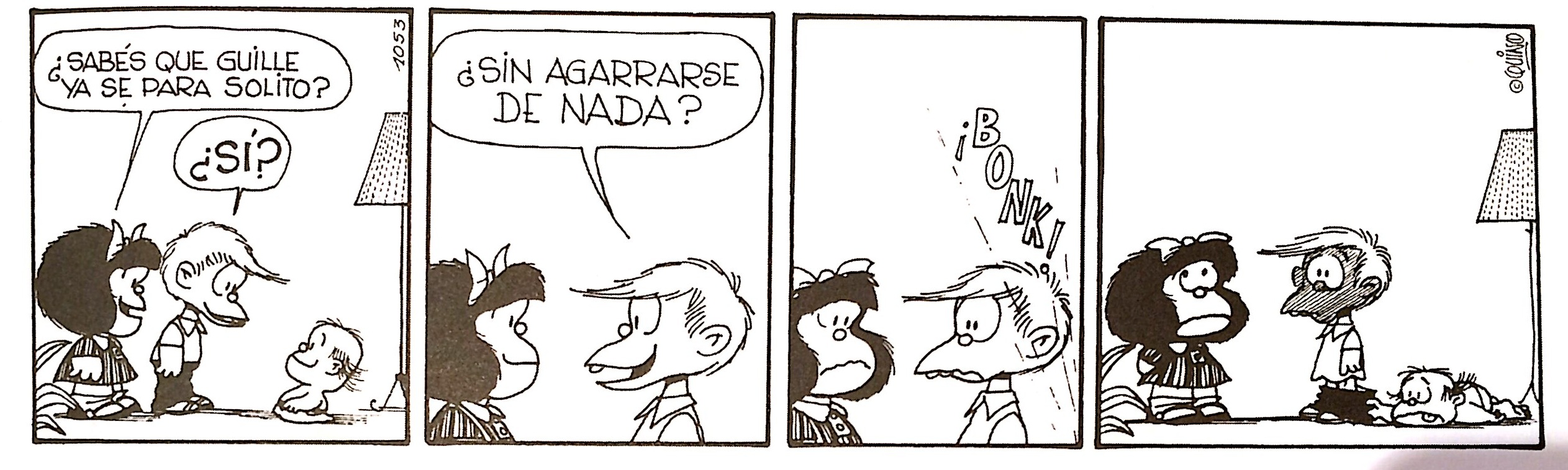 Para los que nos leímos hace una eternidad las tiras de Mafalda de pe a pa y además conocemos parte del repertorio de aquel grupo de rock llamado Tequila, no es ninguna sorpresa ese uso del verbo parar, pues ya escuchamos en su día a la niña argentina decir que su hermano Guille se paraba solito y también oímos al líder de la banda setentera –argentino, como Mafalda– cantar aquello de «hagámoslo de parado, hagámoslo de pie» en su libidinoso Rock del ascensor.