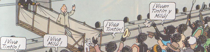 Para empezar les contaré que la frase está extraída de Tintín en el Congo, una de las peores aventuras del famoso periodista belga, que, dicho sea de paso, escribió un solo reportaje en más de cuarenta años. Fue en el primer primer volumen, titulado Tintín en el país de los sóviets. Eso de ponerle tilde a sóviets (o a bíceps) lo hablaremos otro día.